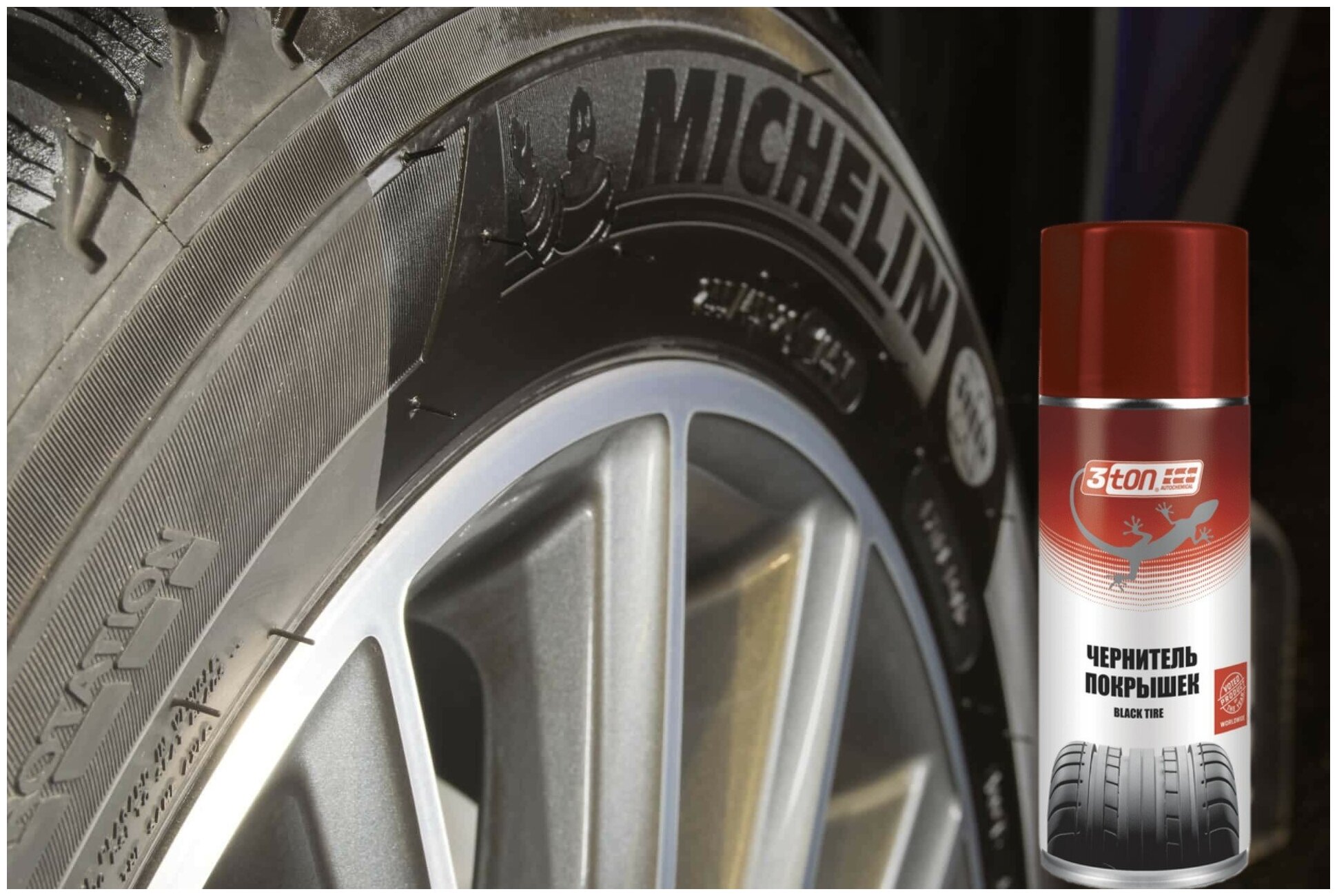 | Плюсы: | Чернит как шины так и пластик |