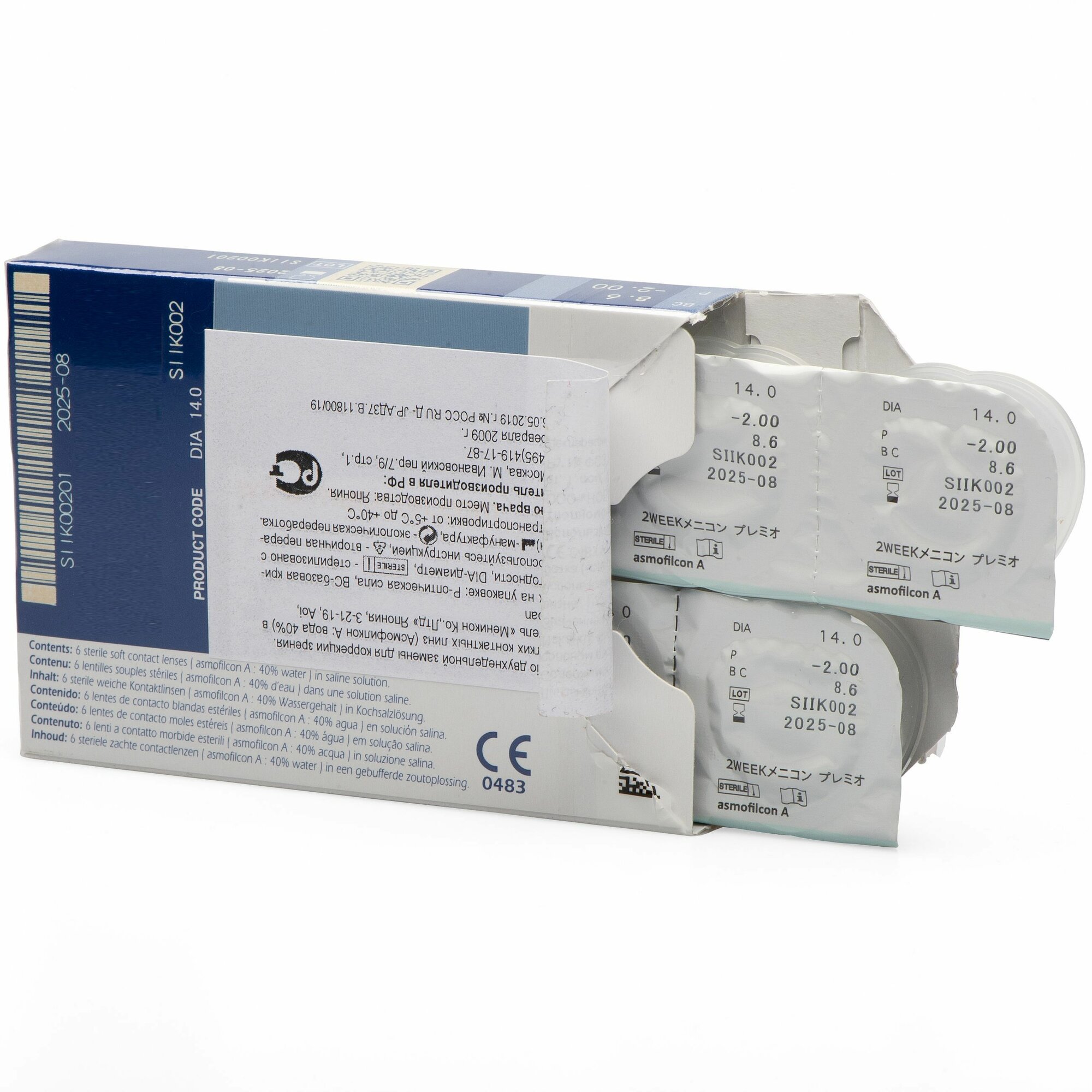 Контактные линзы Menicon PremiO -02,00/14,0/8,6, 6 шт.