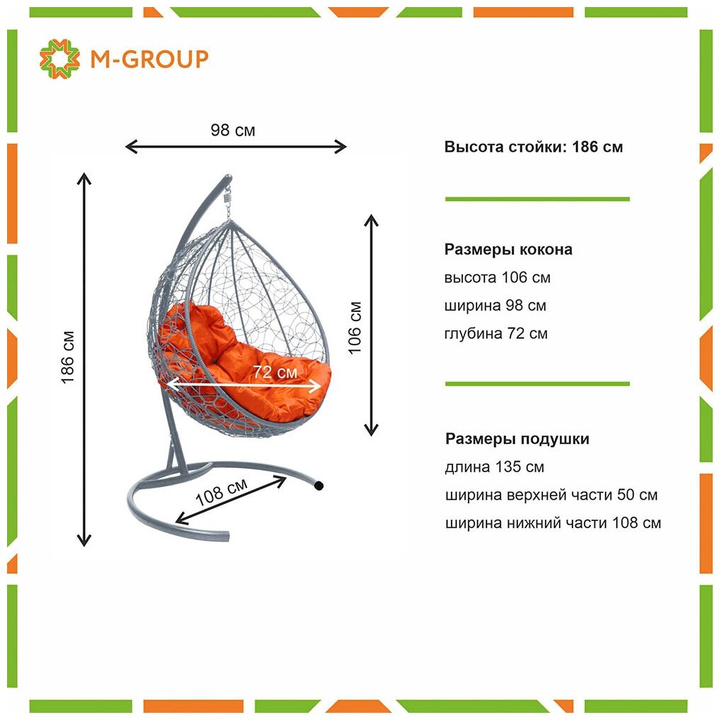 Подвесное кресло M-group капля с ротангом чёрное оранжевая подушка