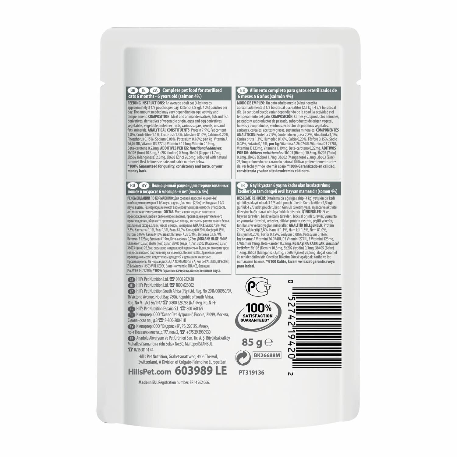 Хиллс 603992 пауч д/стерилизованных кошек до 6 лет Курица 85г