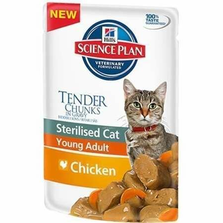 Влажный корм Hill's Science Plan для молодых стерилизованных кошек и кастрированных котов, пауч с курицей в соусе, 12шт х 85г