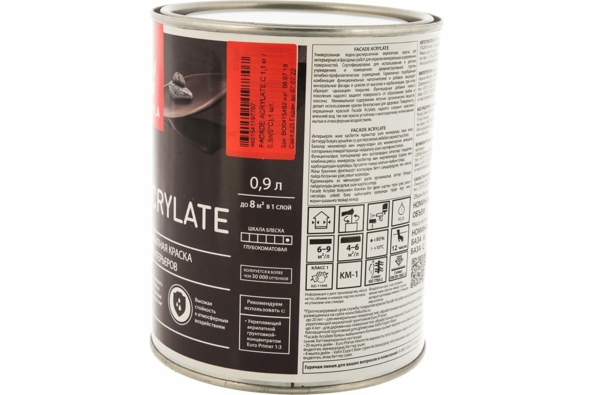 Tikkurila краска facade acrylate база с 0,9 л для фасадов 205605