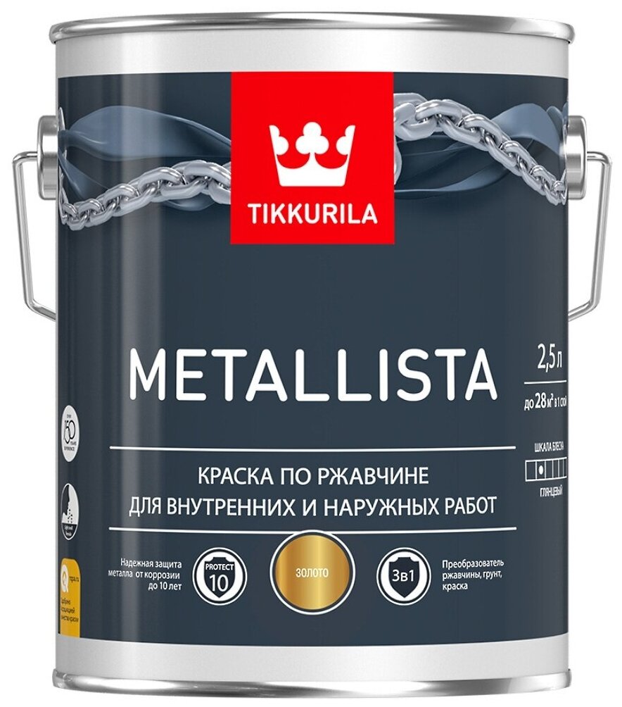 Краска TIKKURILA METALLISTA по ржавчине для внутренних и наружных работ, глянцевая 2,3л База А
