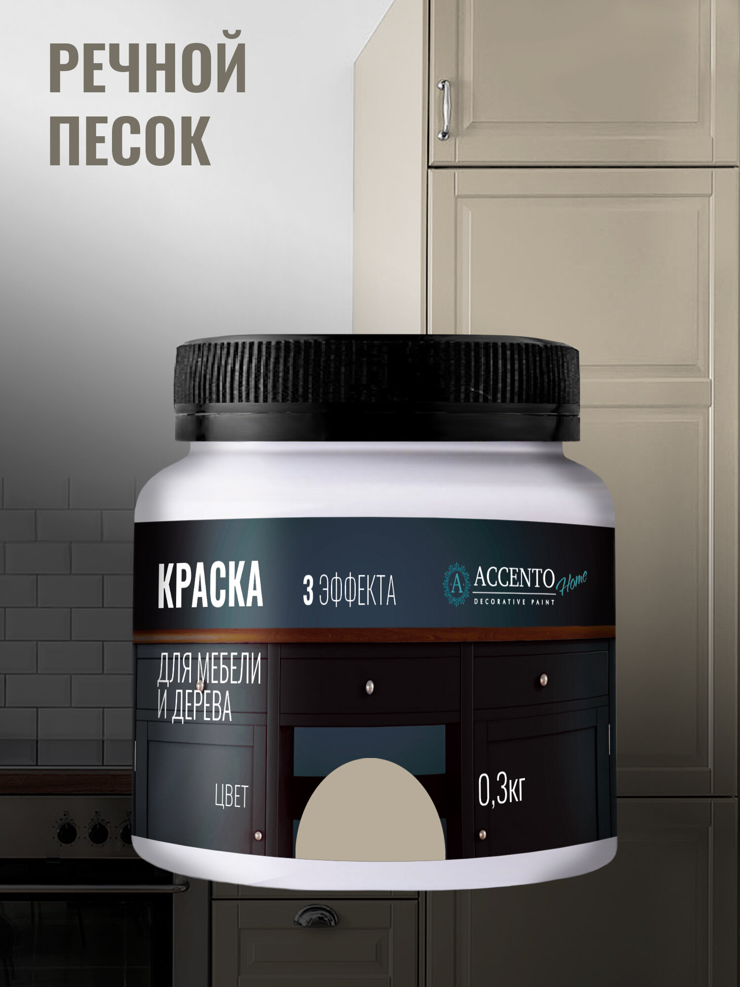 Купить Краска для мебели и дерева акриловая полуматовая, для творчества и декора, цвет Речной песок 300г