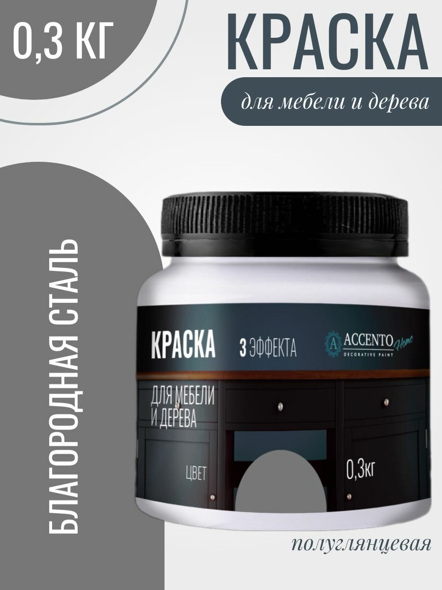 Купить Краска для мебели и дерева акриловая полуматовая, для творчества и декора, цвет Благородная сталь 300г