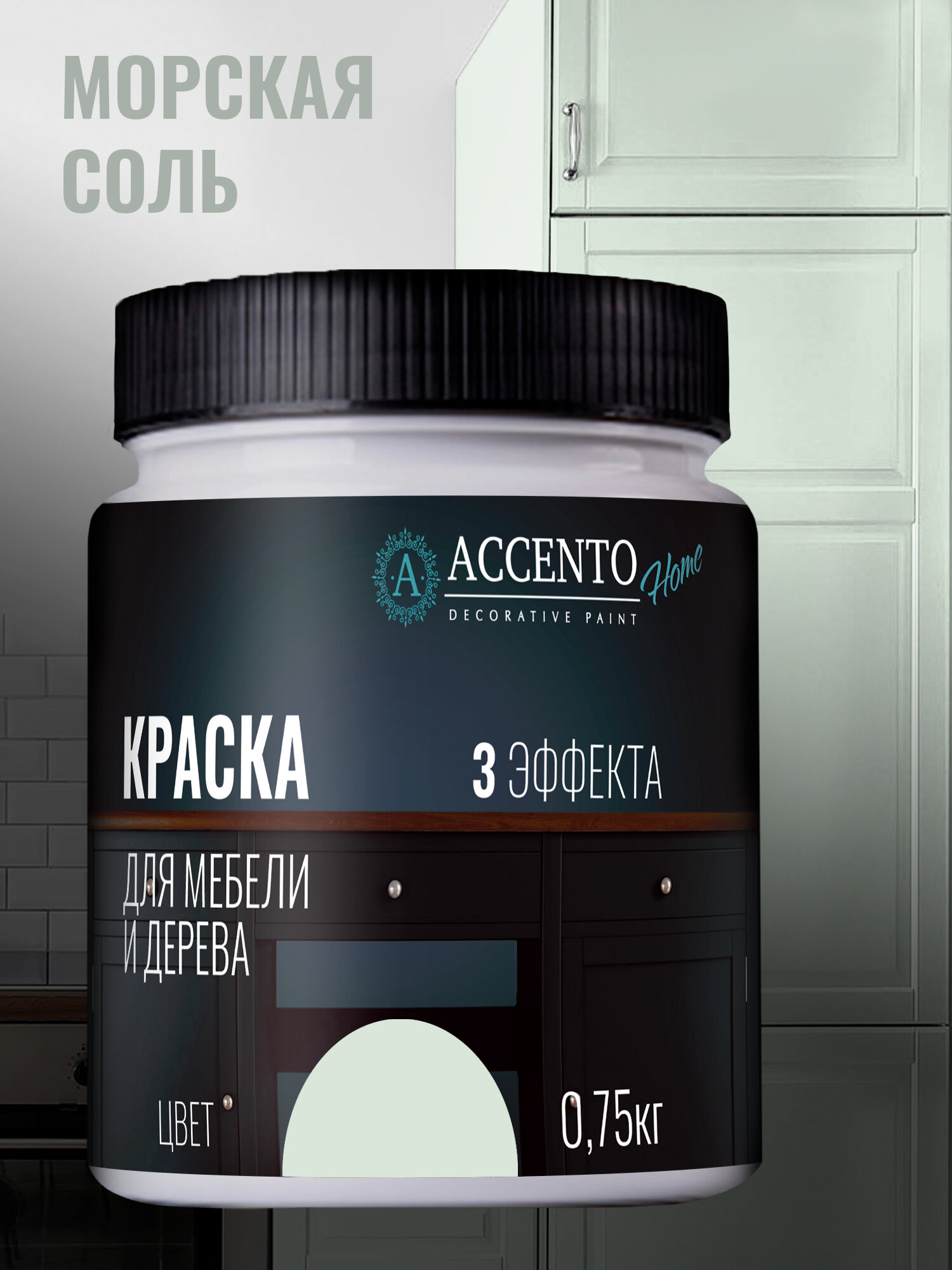 Купить Краска для мебели и дерева акриловая полуматовая, для творчества и декора, цвет Морская соль 750г