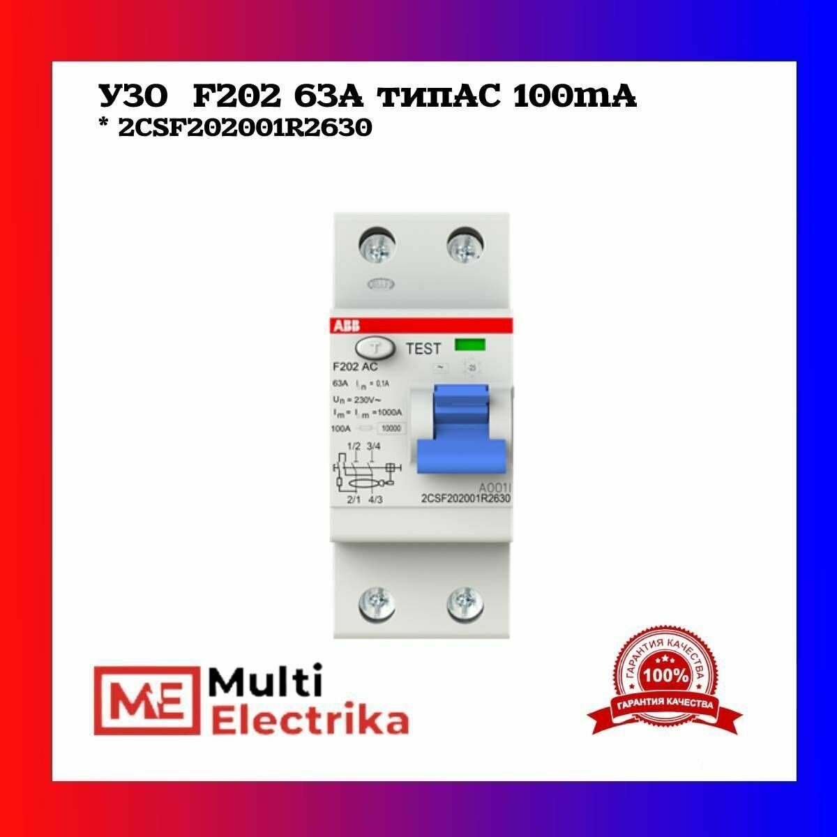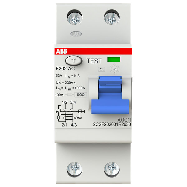 Выключатель дифференциального тока (узо) 2п 63А 100мА тип AC F202 ABB 2CSF202001R2630 .