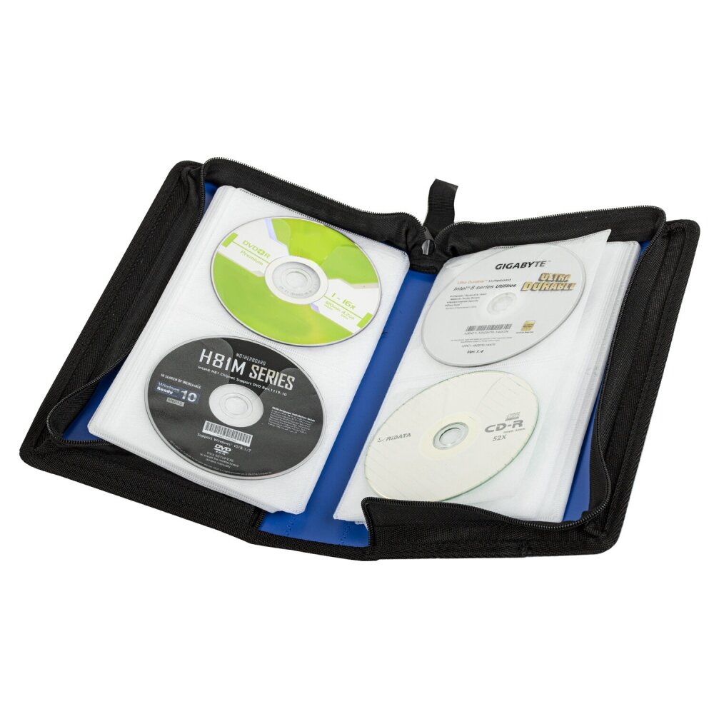Портмоне для CD/DVD BRAUBERG на 96 дисков, обложка пластик, синий, 510091