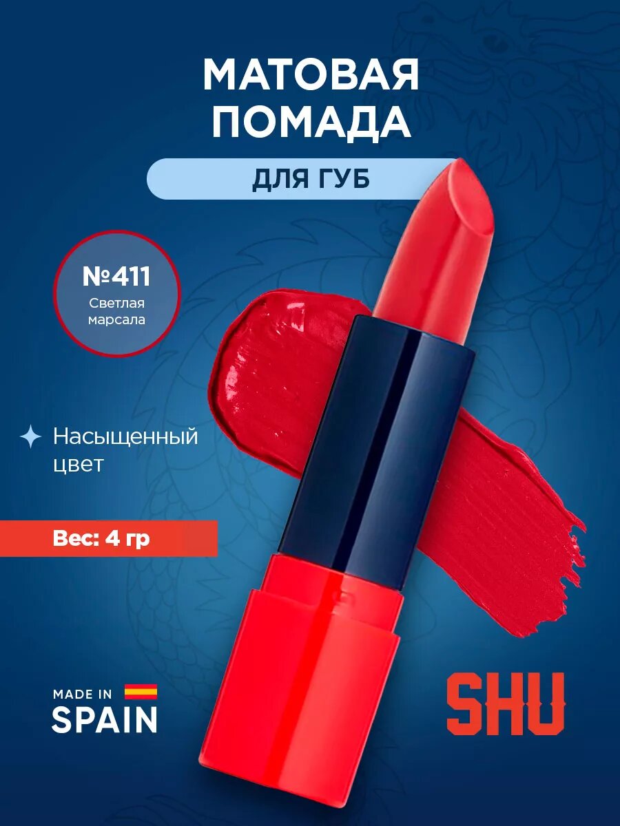 SHU Помада для губ матовая Gonna Be Hot, тон 411 светлая марсала