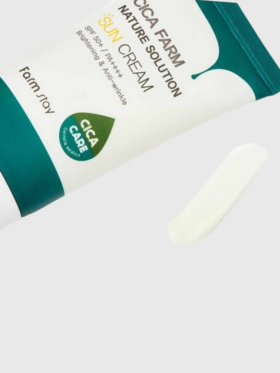 FarmStay Солнцезащитный крем для лица увлажняющий антивозрастной Корея Cica Farm Nature Solution Sun Cream 50g Спф санскрин от загара SPF50+ / PA+++ корейская косметика
