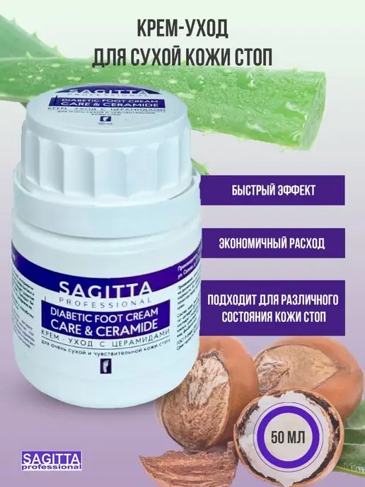 SAGITTA, Крем-уход с церамидами для очень сухой кожи стоп, 50 мл интересное: