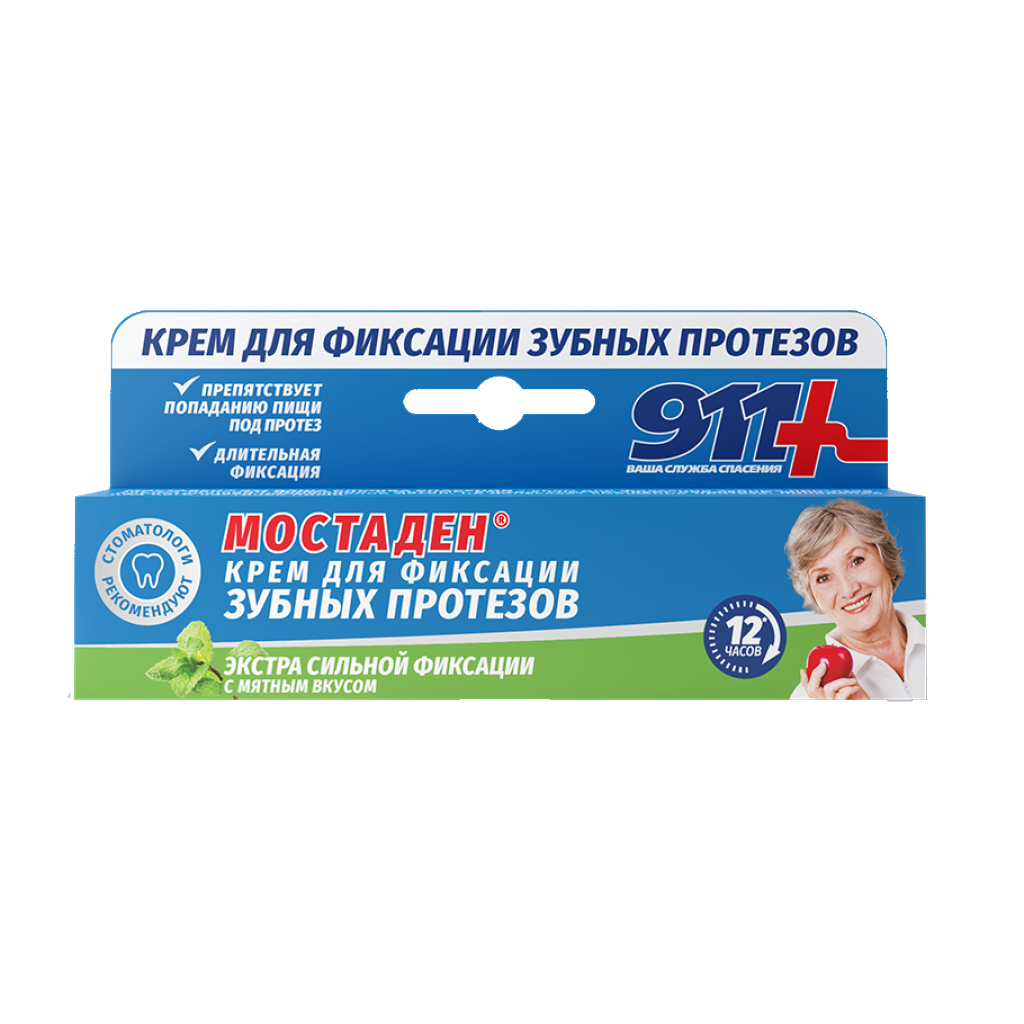 Купить 911 Крем 911 "мостаден" для экстра сильной фиксации зубных протезов, с мятным вкусом