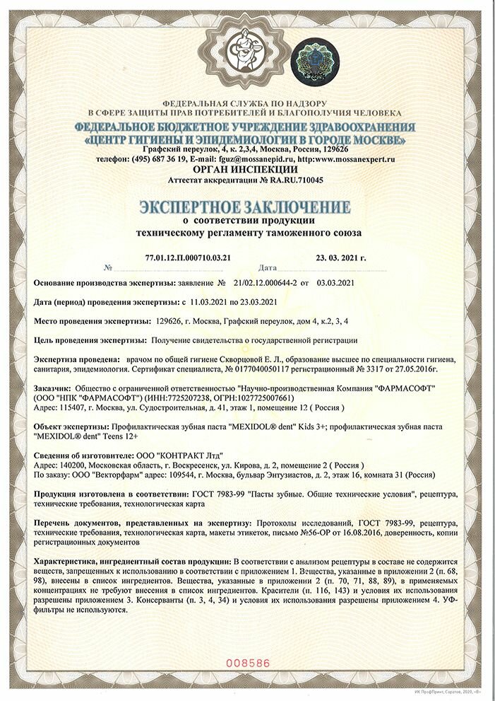 | Не содержит | фтор |