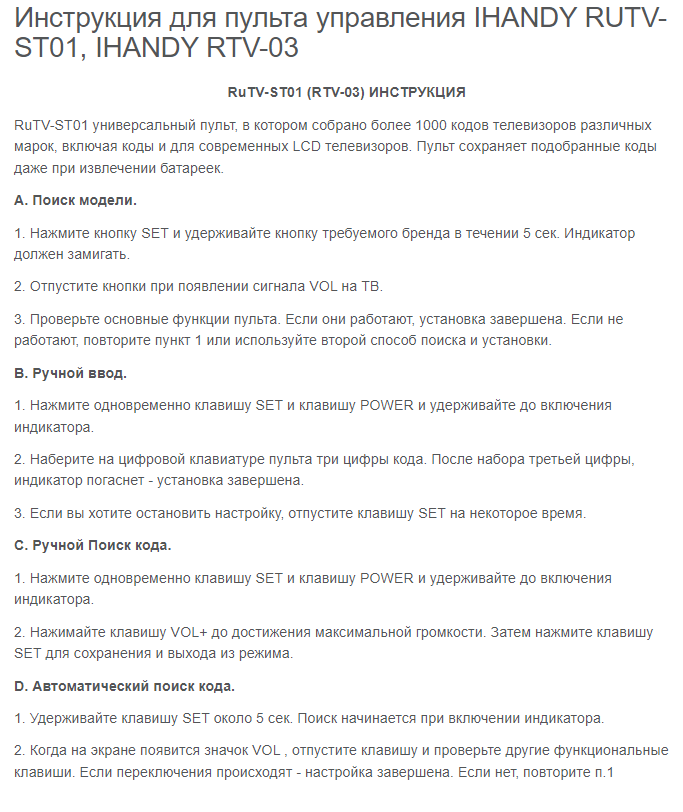 Пульт iHandy RuTV-ST01 Универсальный интересное: