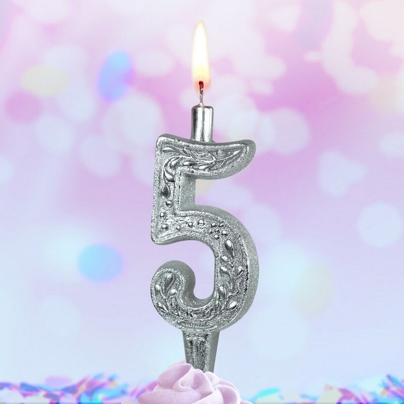 Свеча для торта цифра "Серебряный узор", 10,2 см, цифра "5" интересное: