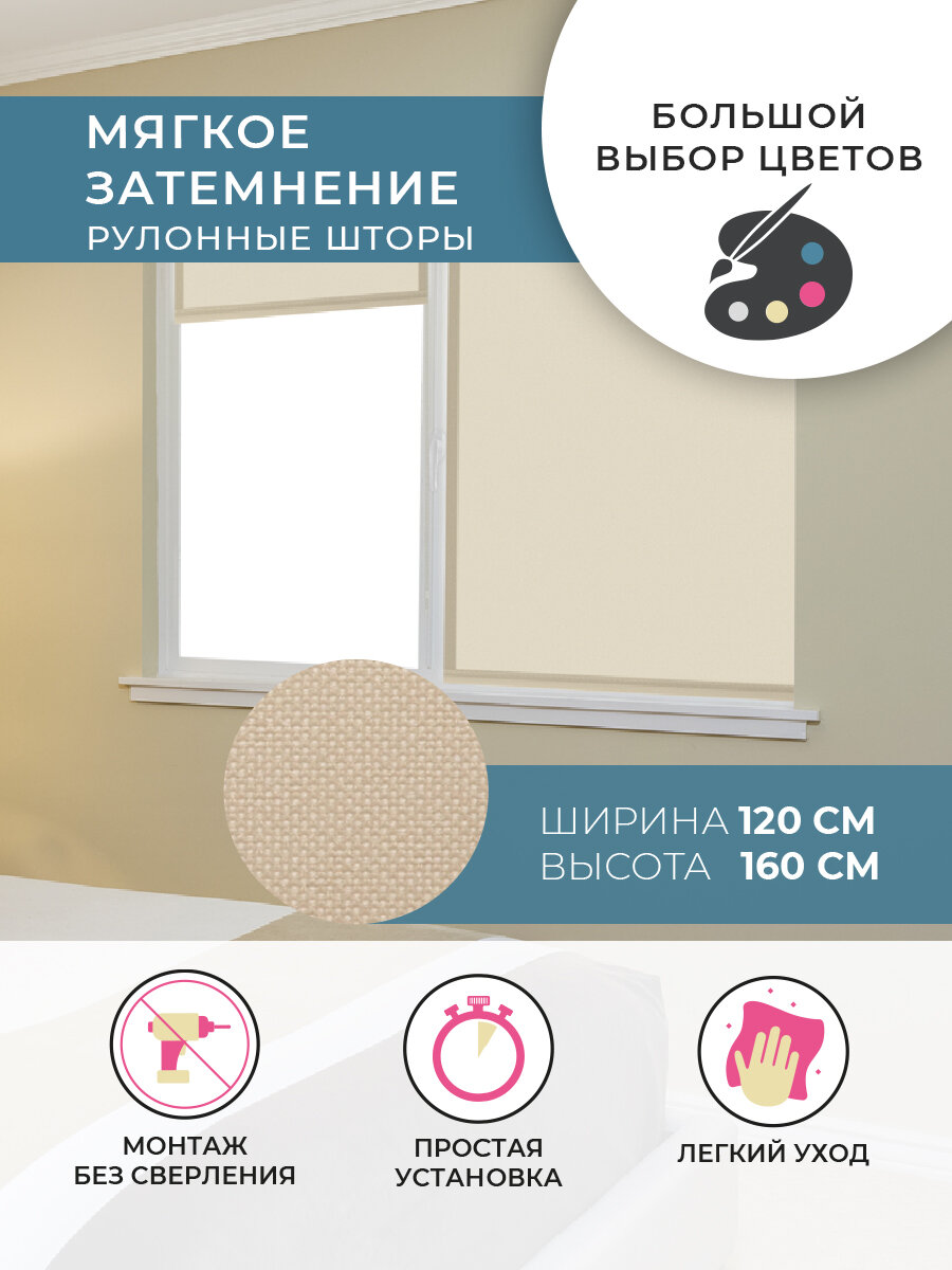 Рулонные шторы однотонные 120 см х 160 см Античный бежевый Плайн DECOFEST (Мини)
