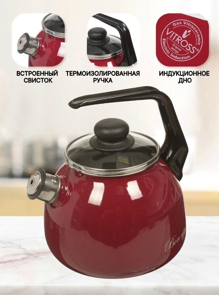 Чайник Vitross Bon Appetit 1RC12 3л вышневый со свистком .