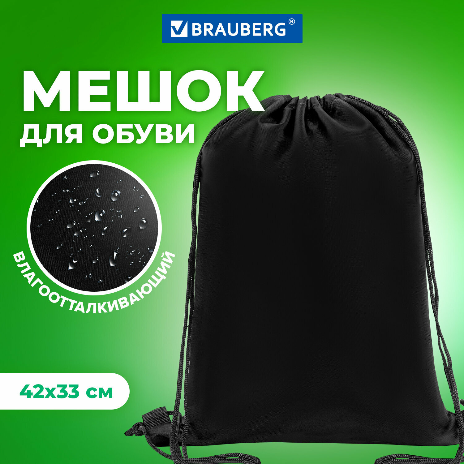Мешок для обуви 1 отделение Brauberg, черный, 420x330мм (227143)