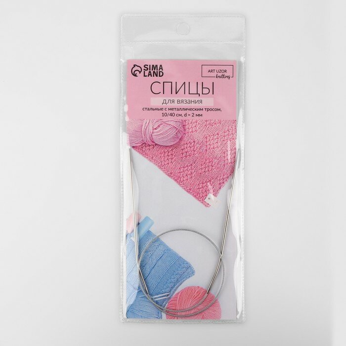 Арт Узор Спицы круговые, для вязания, с металлическим тросом, d = 2 мм, 10/40 см