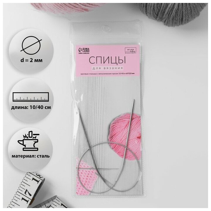 Купить Спицы для вязания, круговые, с металлическим тросом, d 2 мм, 10/40 см