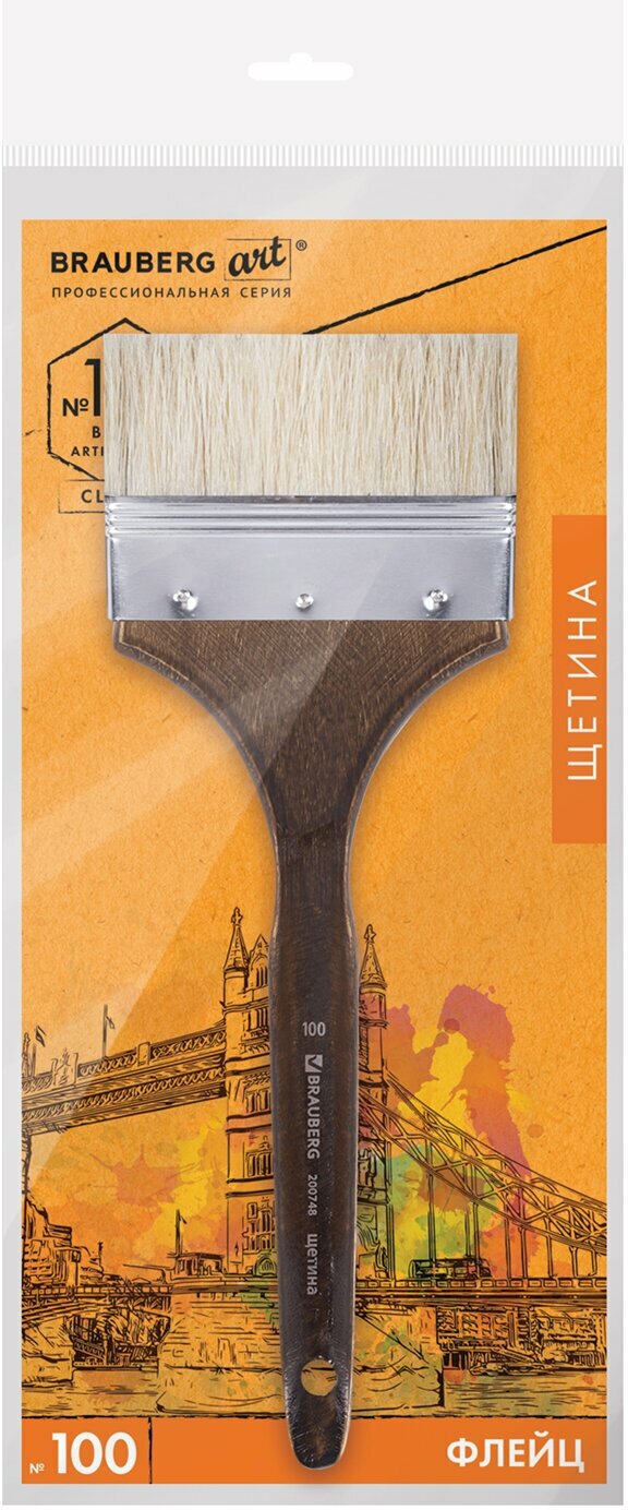 Кисть художественная профессиональная BRAUBERG ART CLASSIC, щетина, флейц, № 100, короткая ручка, 200748, 1 шт