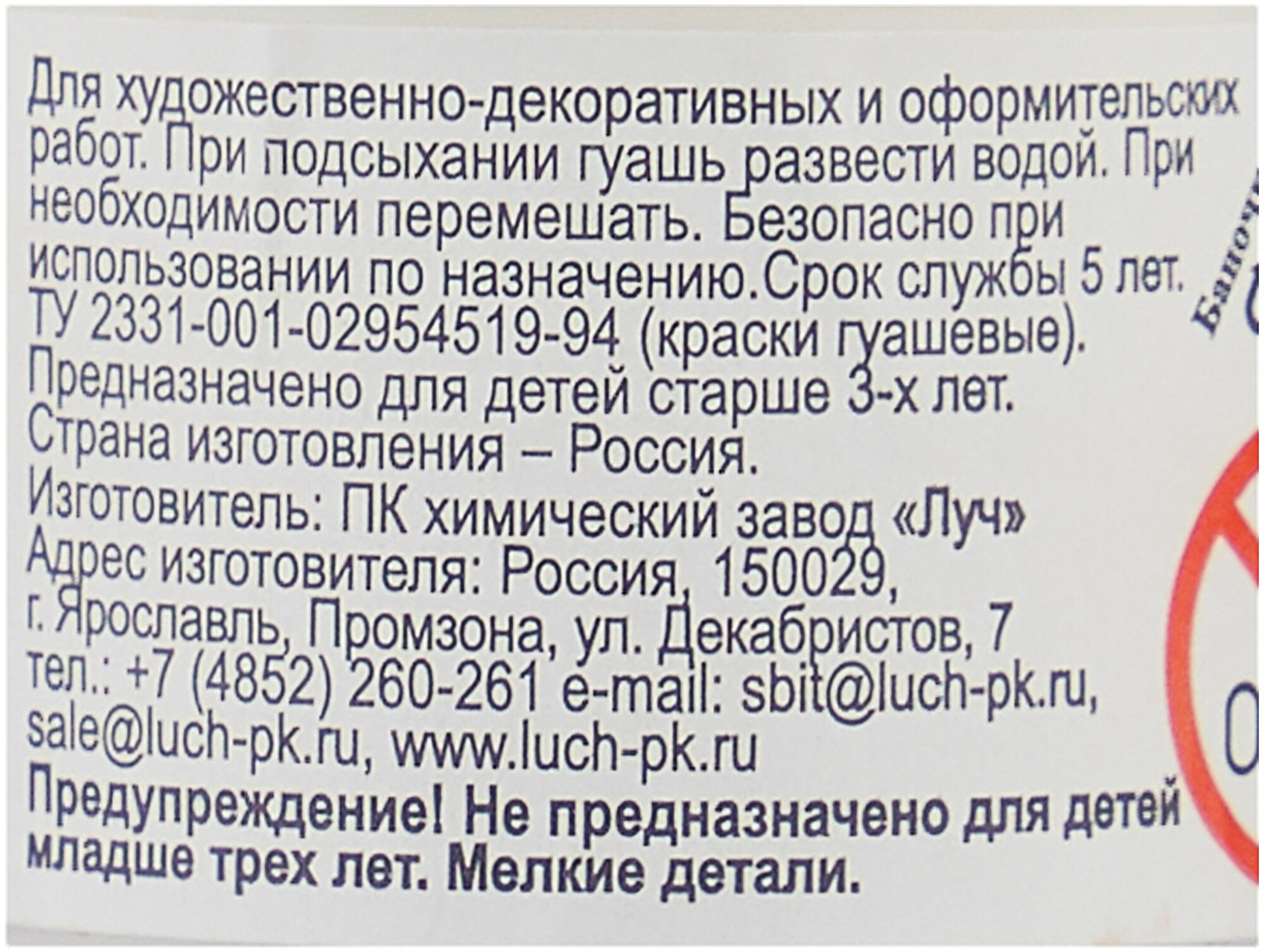 Гуашь «Луч», 20 мл, белила титановые