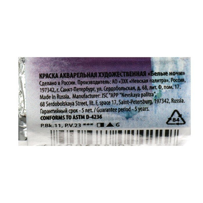 Завод художественных красок «Невская палитра» Акварель художественная "Белые ночи", 2.5 мл, фиолетовая мгла, в кювете