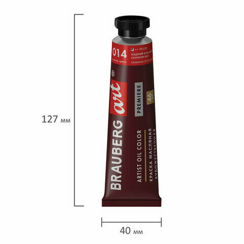 Краска масляная художественная BRAUBERG ART PREMIERE, 46 мл, проф. серия, красная темная, 191410