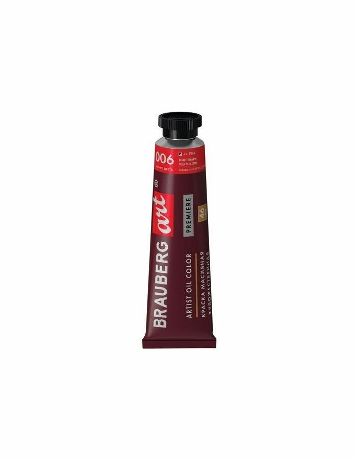 Краска масляная художественная BRAUBERG ART PREMIERE, 46 мл, проф. серия, киноварь, 191406