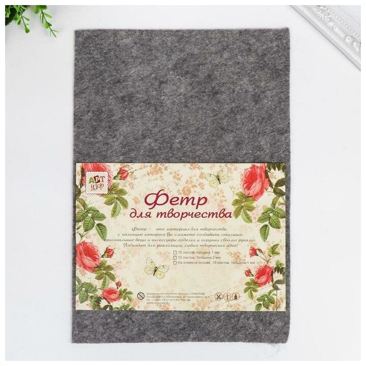 Фетр мягкий "Мраморный" 1 мм (набор 10 листов) формат А4, "Арт Узор", цвет серый