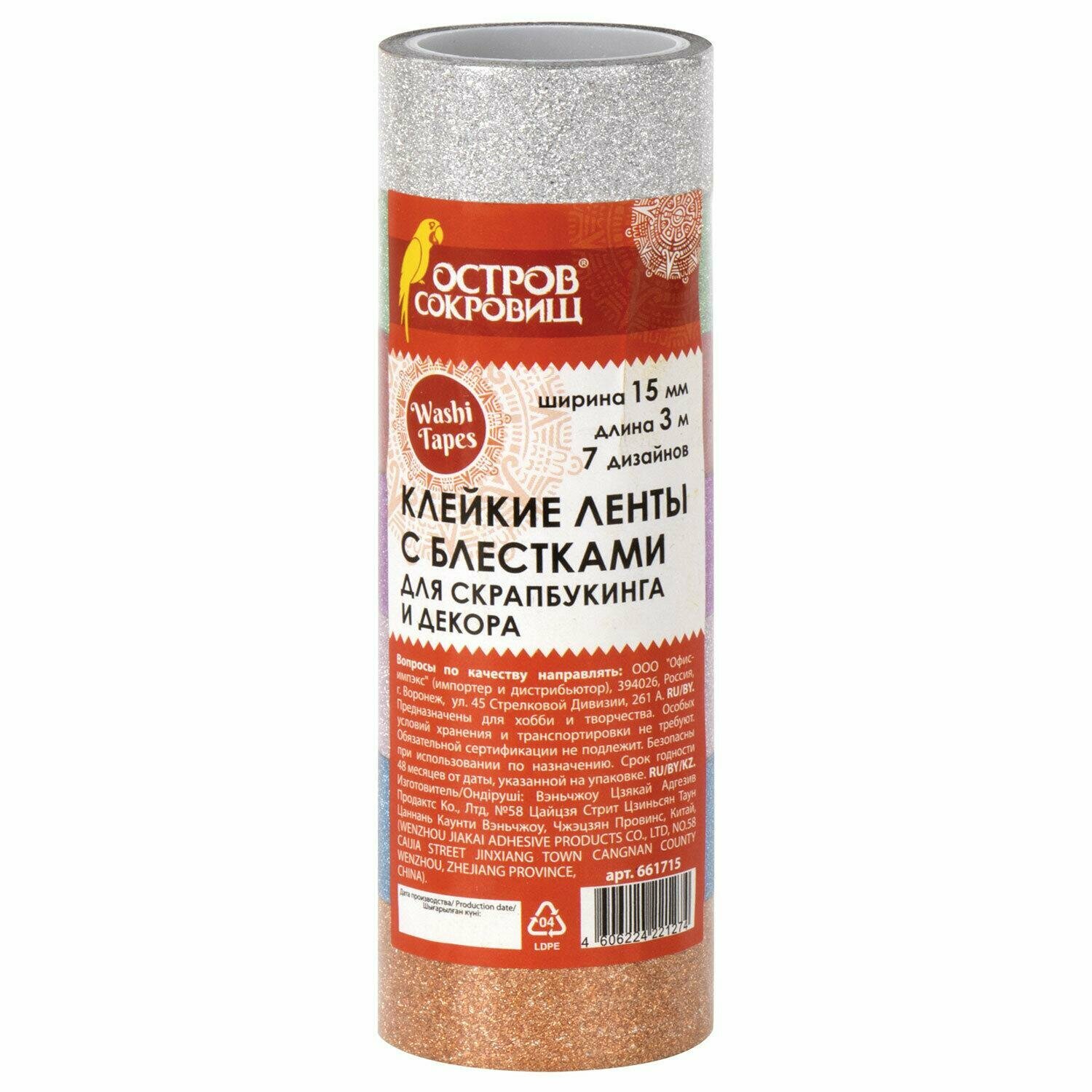 Купить Клейкие ленты полимерные для скрапбукинга и декора с блестками, интенсив, 15 мм * 3 м, 7 цветов, комплект, остров сокровищ, 661715, 1 шт