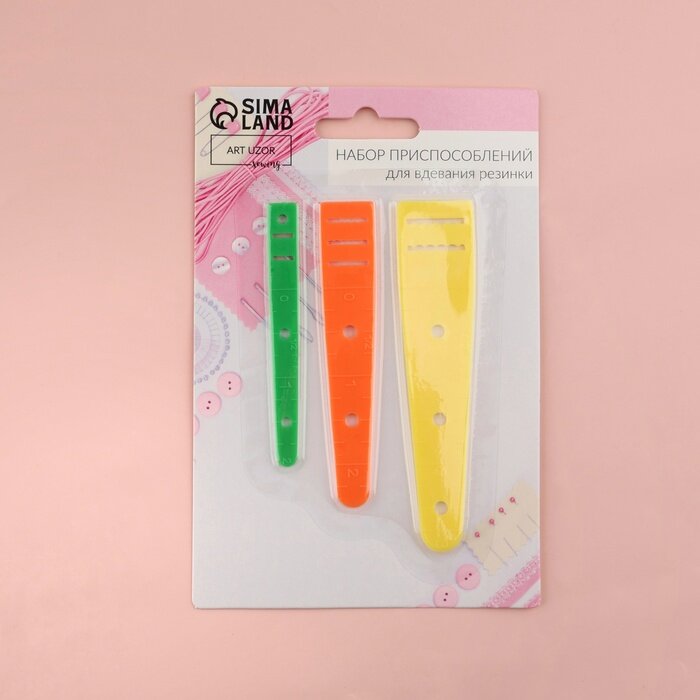 Набор приспособлений для вдевания резинки Арт Узор 3 шт, разноцветные, пластиковые