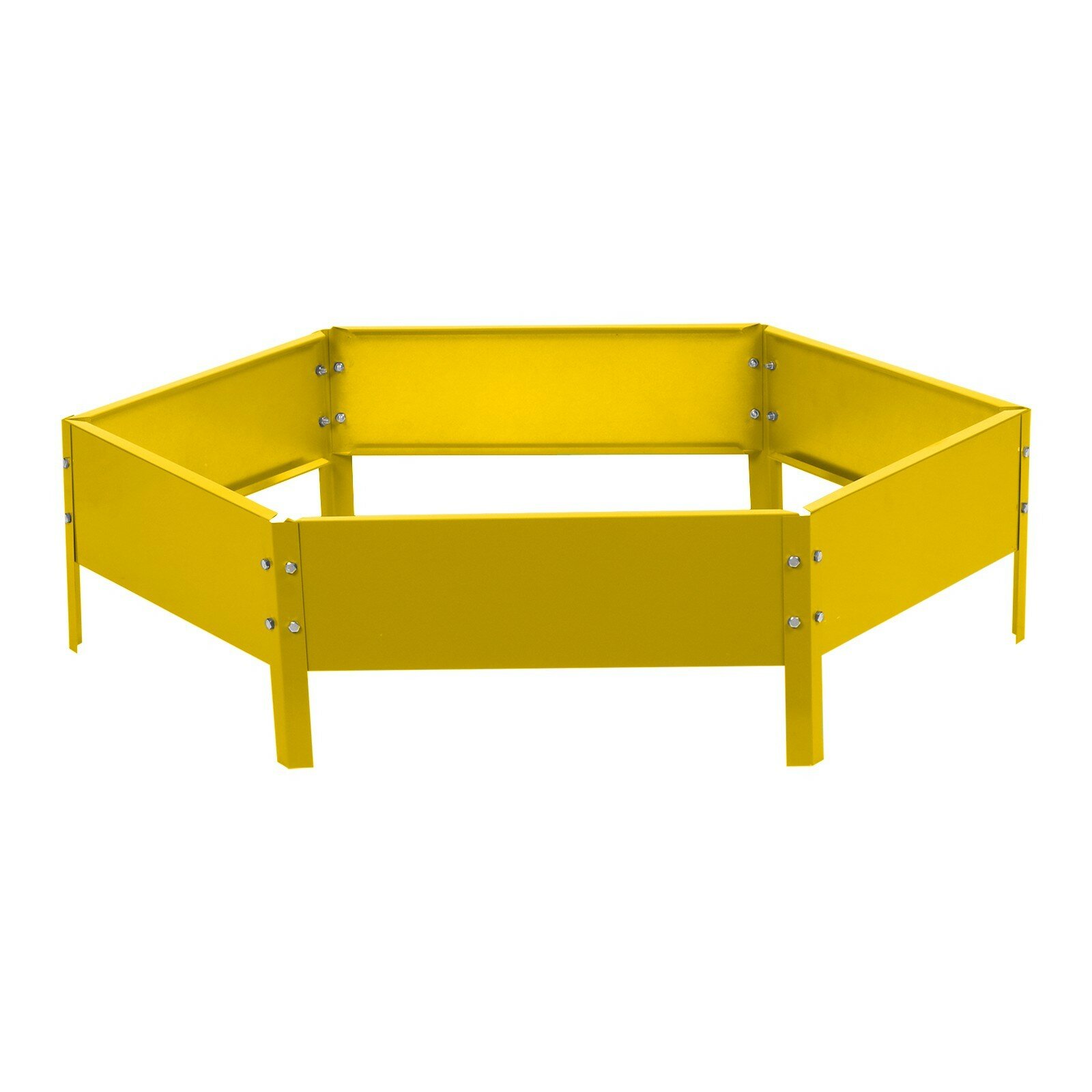 Клумба садовая оцинкованная, одноярусная шестиугольная для дачи, сада и огорода, декоративное ограждение сборное для цветов, диаметр 140 см, высота 15 см, цвет желтый