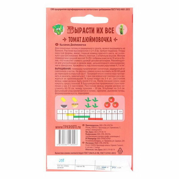 Семена Томат "Дюймовочка", 0,1 г интересное: