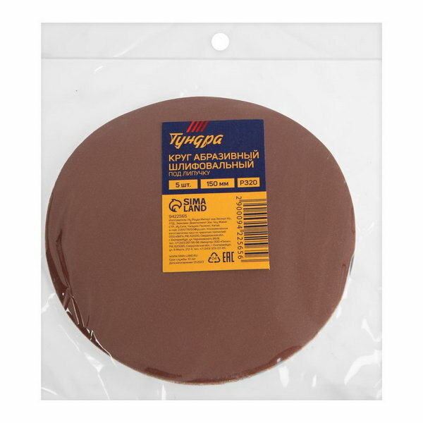 Круг абразивный шлифовальный под "липучку" тундра, 150 мм, Р320, 5 шт.