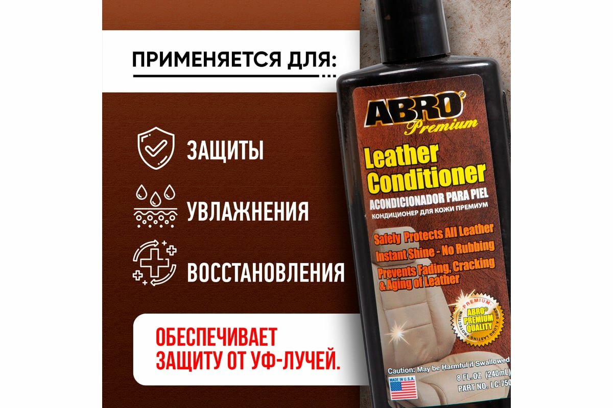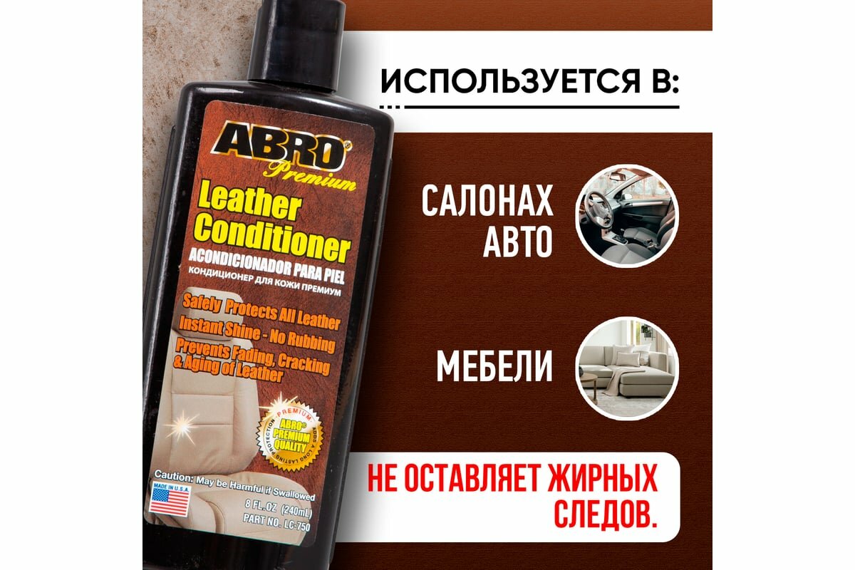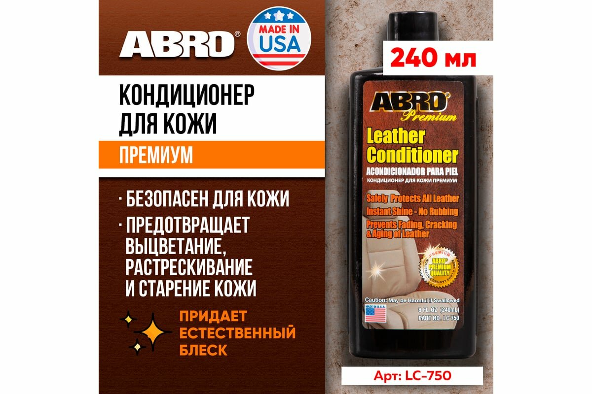 Кондиционер для кожи и винила автомобиля ABRO Premium / Made in U.S.A. / Кондиционер для ухода за кожей универсальный 240 мл. LC-750