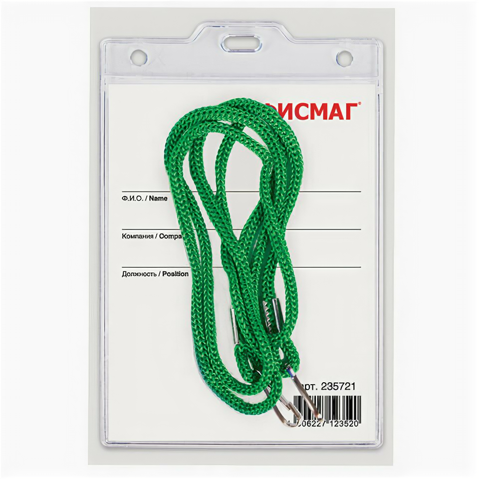 Купить Бейдж вертикальный большой (120х90 мм), на зеленом шнурке 45 см, 2 карабина, офисмаг, 235721 (цена за 1 ед.товара)