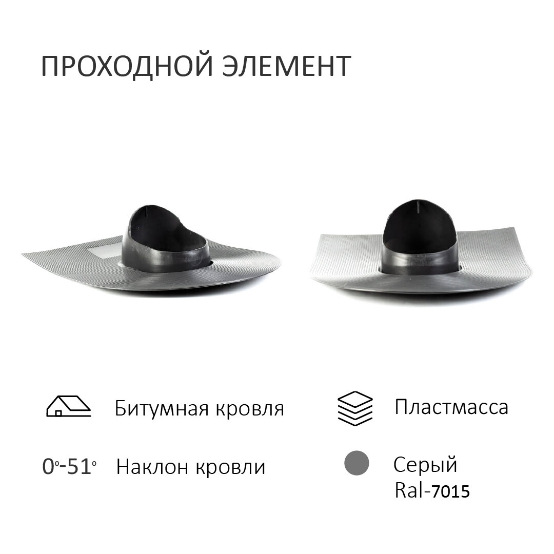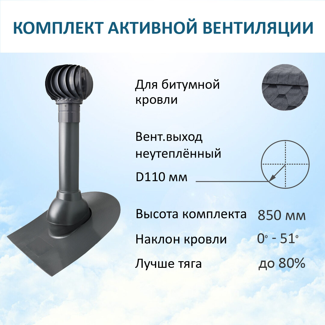 Купить Комплект активной вентиляции: Турбодефлектор TD110, вент.выход 110 не утепленный, проходной элемент для битумной кровли, серый