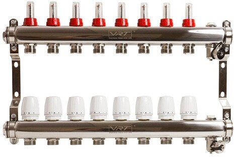 Коллекторная группа VRT® 1" х 3/4'' (евроконус) 8 вых, c расходомерами