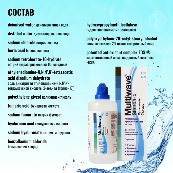 Multiwave Standard Раствор универсальный офтальмологический для всех типов контактных линз 100 мл 1 шт