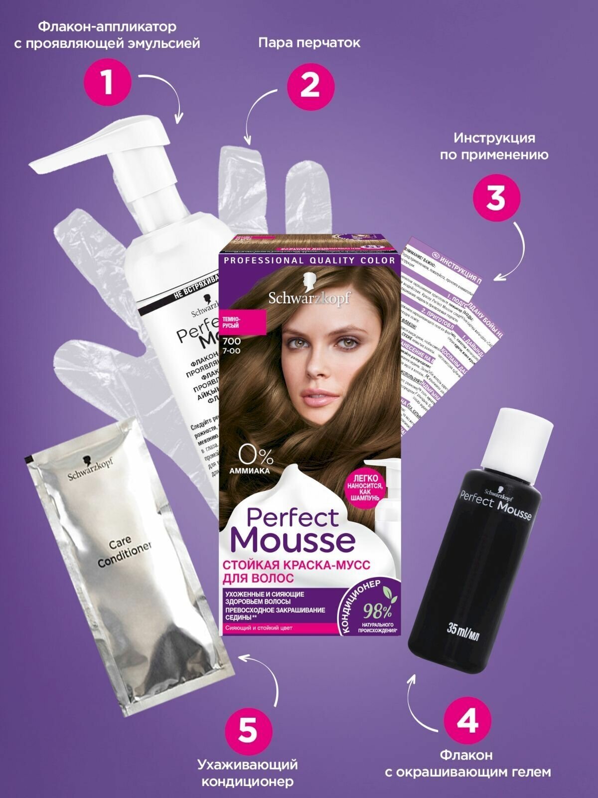 Краска-мусс для волос Perfect Mousse сияющий и стойкий цвет 700 Темно-русый 92.5мл