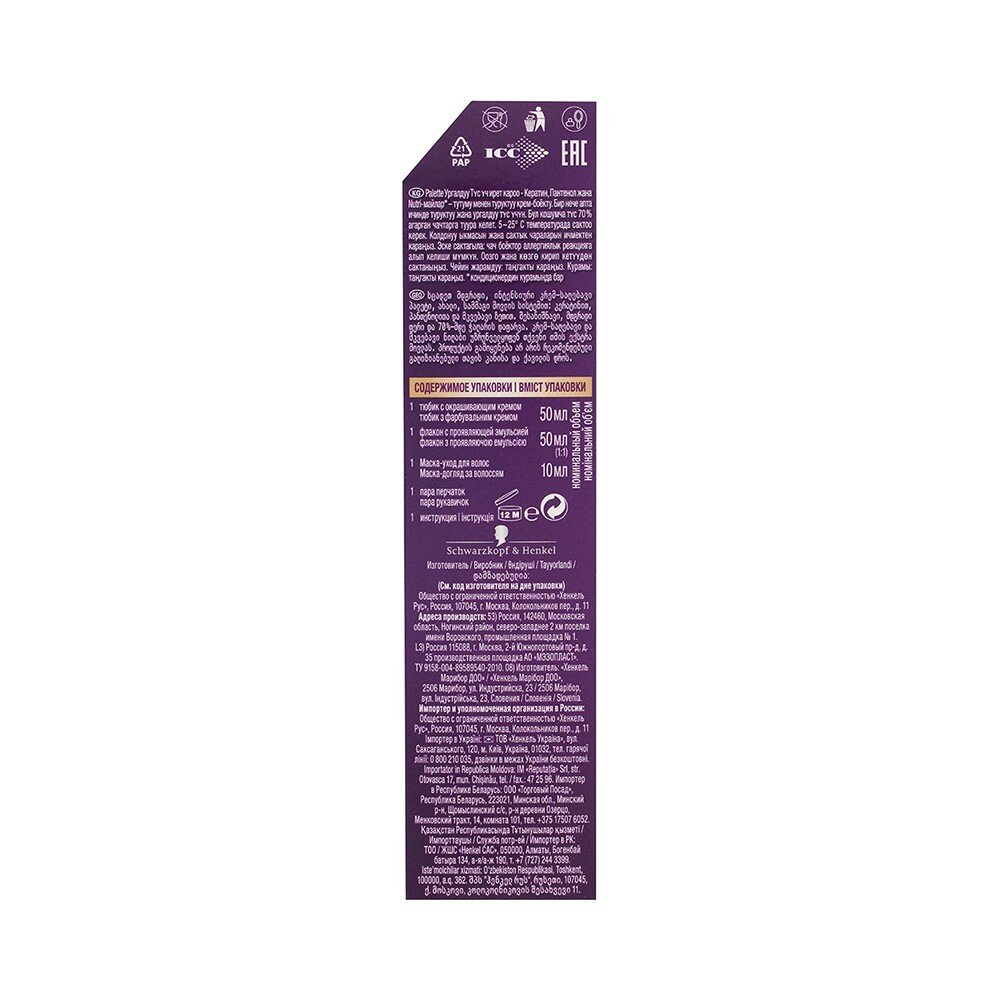 | Плюсы: | Краска от Schwartzkopf Palette довольно известная, разрекламированная. В этот раз по акции цена была чуть дороже 100 рублей.