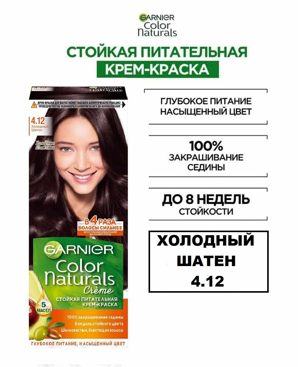 Ниже Вы можете прочитать отзывы на Краска для волос GARNIER COLOR NATURALS 4.12 Холодный Шатен, ознакомится с подробными характеристиками, посмотреть интересные обзоры и фотографии на Краска для волос GARNIER COLOR NATURALS 4.12 Холодный Шатен.