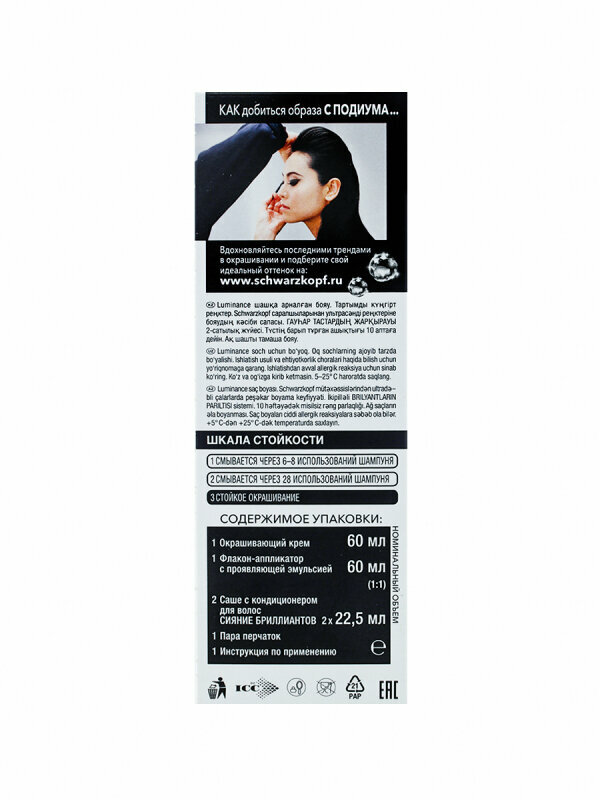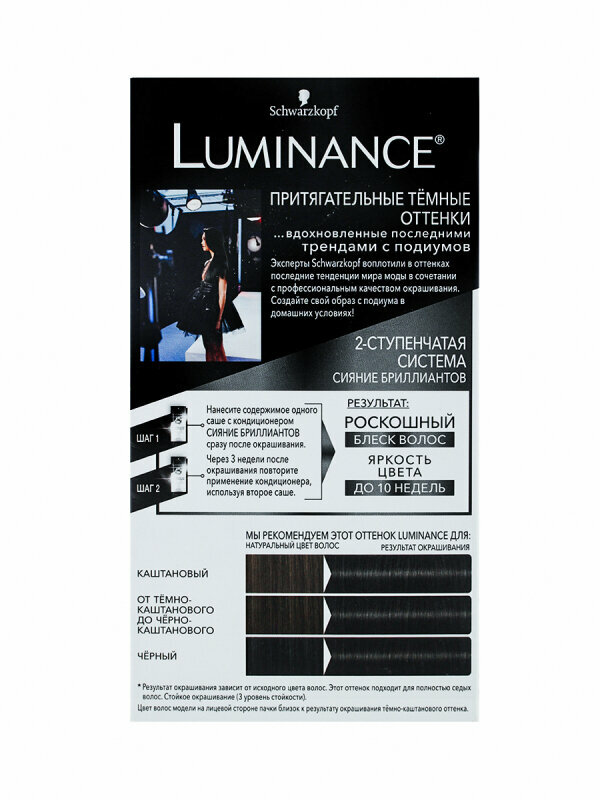 Schwarzkopf Luminance Притягательные тёмные Стойкая краска для волос, 1.0, Благородный черный
