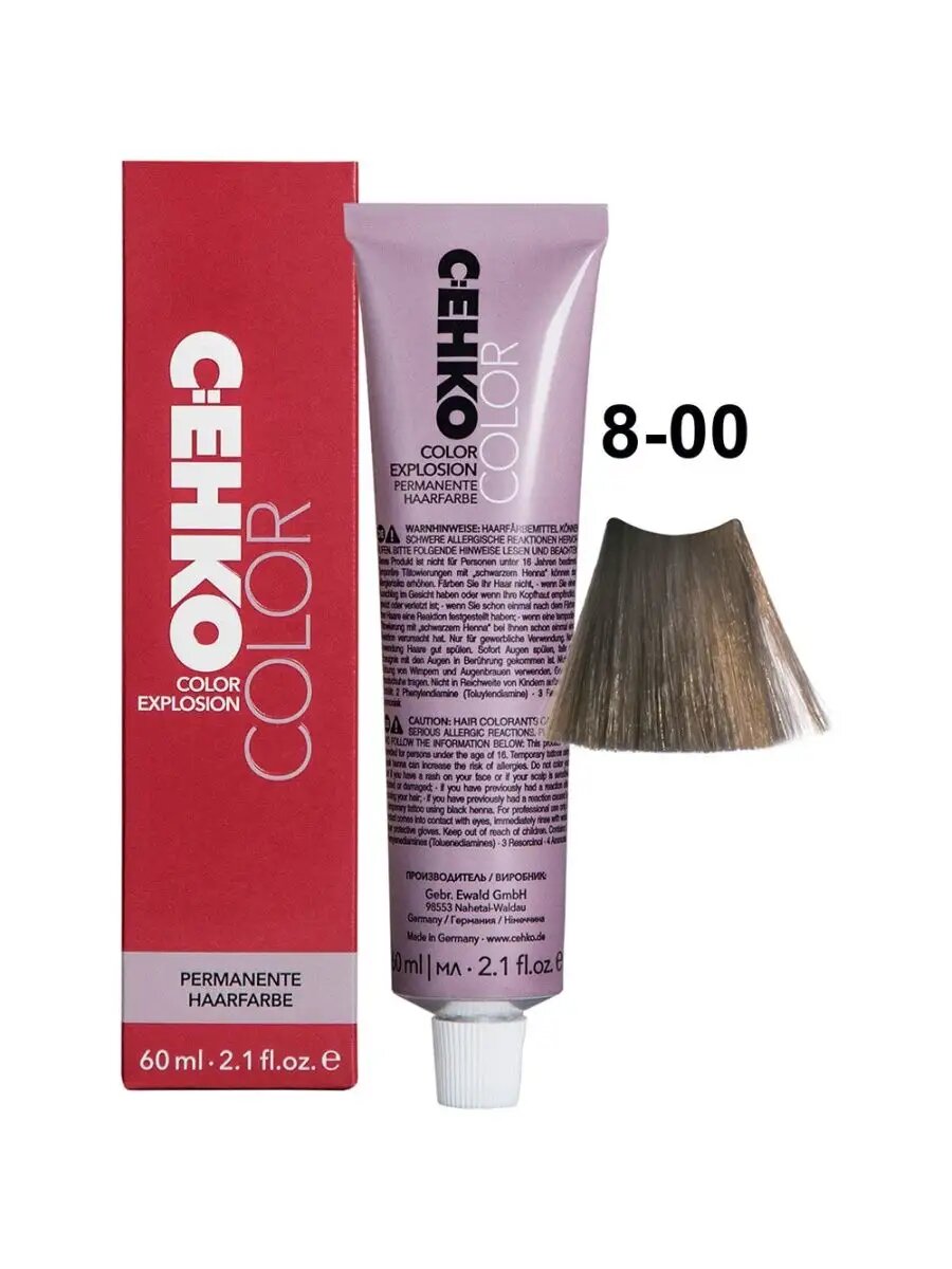 Профессиональная краска для волос 8/00 Светлый блондин, интенсивный, русый, натуральный, стойкая, для седых волос, 60 мл, C:EHKO COLOR EXPLOSION