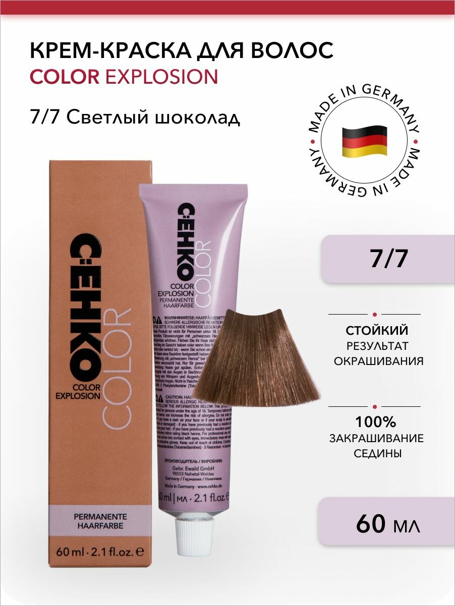 Профессиональная краска для волос 7/7 Светлый шоколад, коричневый, стойкая, перманентная, для седых волос, 60 мл, C:EHKO COLOR EXPLOSION