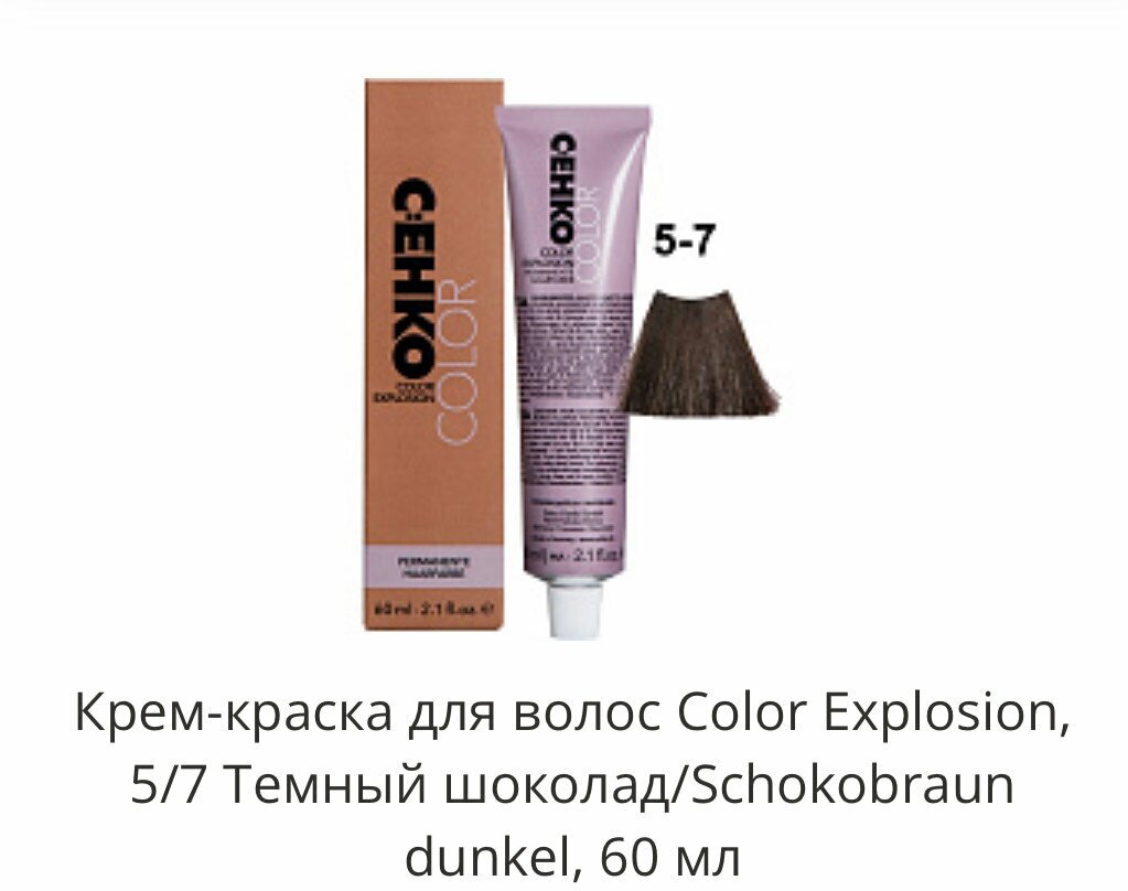Профессиональная краска для волос 5/7 Темный шоколад, коричневая, стойкая, перманентная, для седых волос, 60 мл, C:EHKO COLOR EXPLOSION