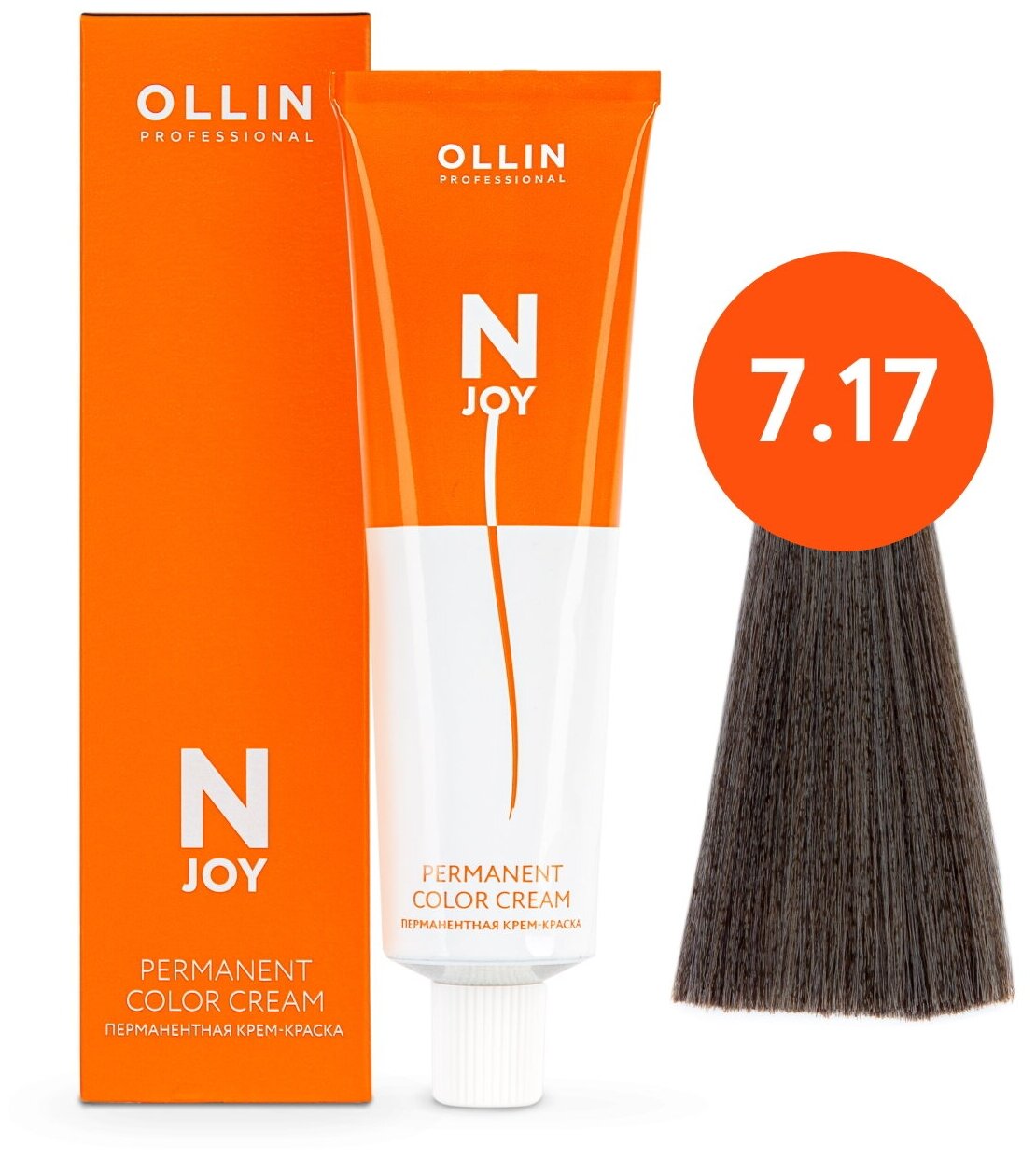 Ollin, Крем-краска для волос N-Joy 7/17 Русый пепельно-коричневый, перманентная, 100 мл