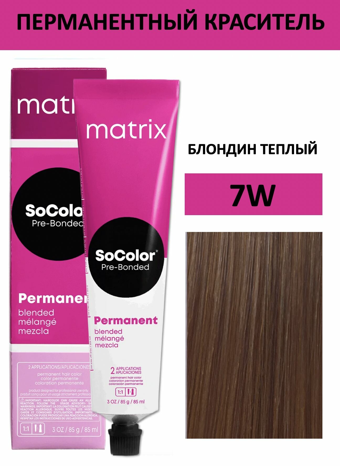 Купить Matrix SoColor перманентная крем-краска для волос Pre-Bonded, 7W теплый блондин, 90 мл