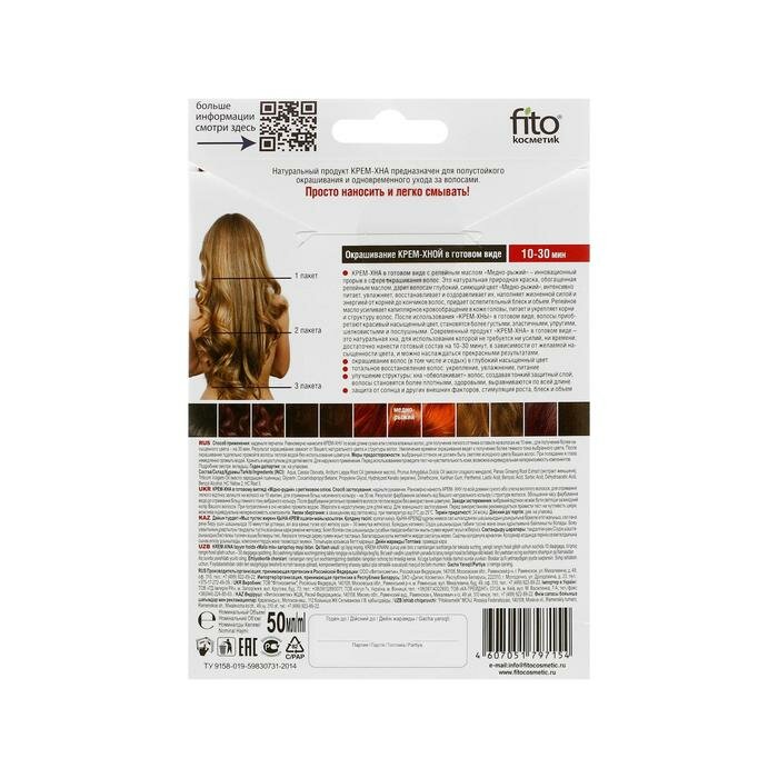 Купить Fito косметик Крем-хна иранская натуральная с репейным маслом в готовом виде цвет медно-рыжий, 50 мл